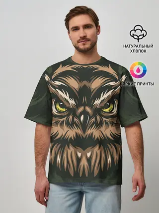 Мужская футболка оверсайз / Хищная сова