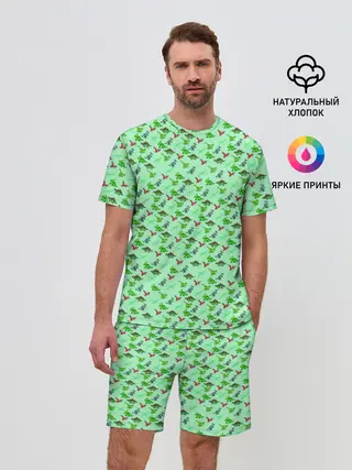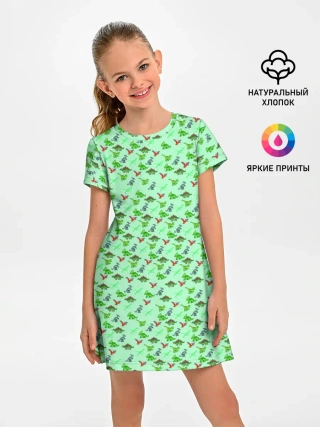 Лонгслив женский. Хлопок / Пиксели зеленые