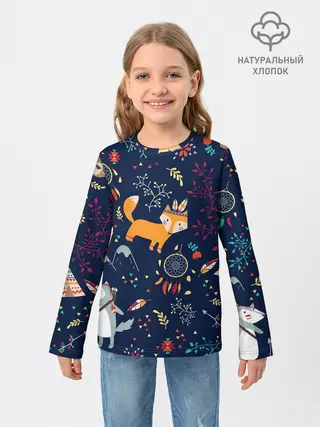Детский лонгслив / Звери природа индейцы этно