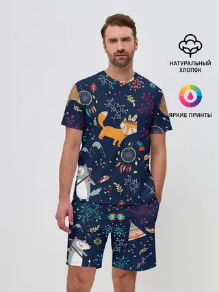 Мужская пижама с брюками / Звери природа индейцы этно