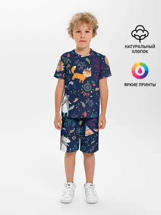 Детская пижама с шортами / Звери природа индейцы этно