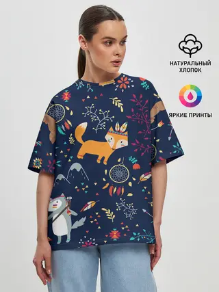 Женская футболка оверсайз / Звери природа индейцы этно
