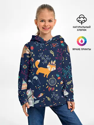 Детское худи / Звери природа индейцы этно