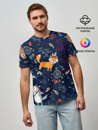 Мужская базовая футболка / Звери природа индейцы этно