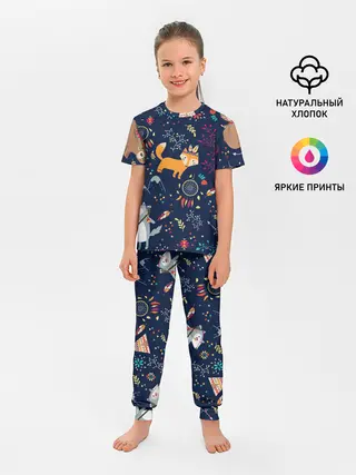 Детская пижама с брюками / Звери природа индейцы этно