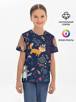 Детская базовая футболка / Звери природа индейцы этно