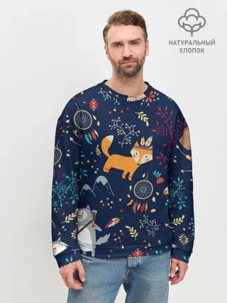Мужской свитшот базовый / Звери природа индейцы этно
