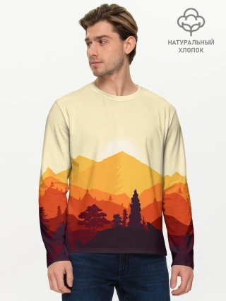 Мужской лонгслив базовый / Горы закат пейзаж лиса арт
