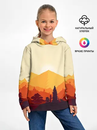 Детское худи / Горы закат пейзаж лиса арт