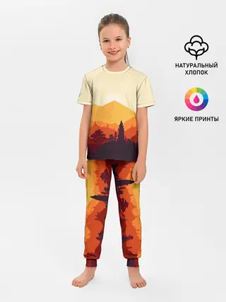 Детская пижама с брюками / Горы закат пейзаж лиса арт