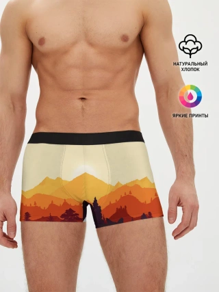 Мужские трусы боксеры / Горы закат пейзаж лиса арт