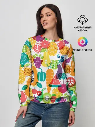 Лонгслив женский. Хлопок / Веган Авокадо узор