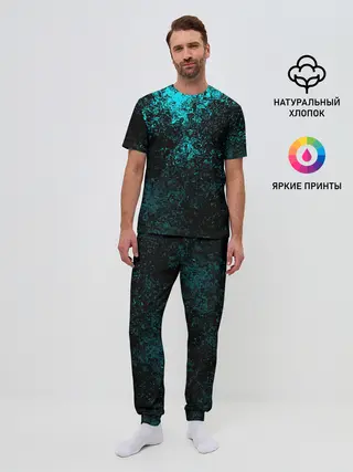 Мужская пижама с брюками / БРЫЗГИ-КРАСОК НЕОН