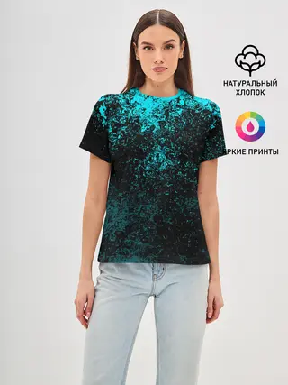 Женская базовая футболка / БРЫЗГИ-КРАСОК НЕОН