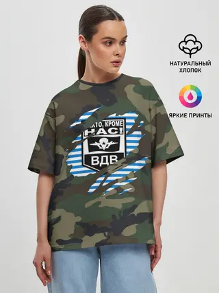 Женская футболка оверсайз / Рваный камуфляж ВДВ