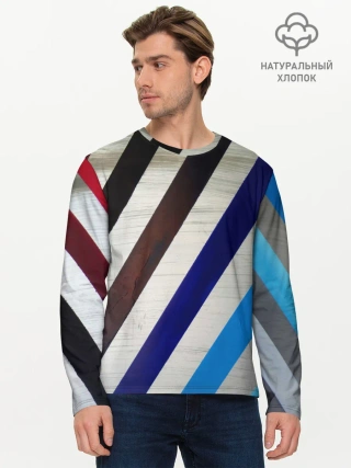 Мужской лонгслив базовый / Косые линии полосы крупные