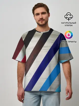 Мужская футболка оверсайз / Косые линии полосы крупные