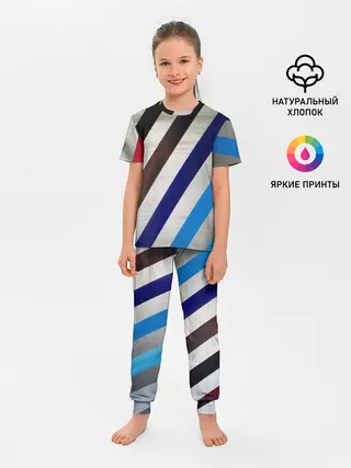 Детская пижама с брюками / Косые линии полосы крупные