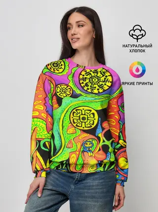 Лонгслив женский. Хлопок / Психоделика