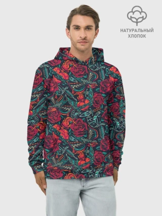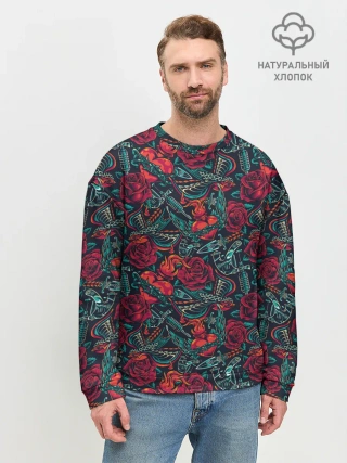 Мужской лонгслив базовый / Тату узор розы и машинки