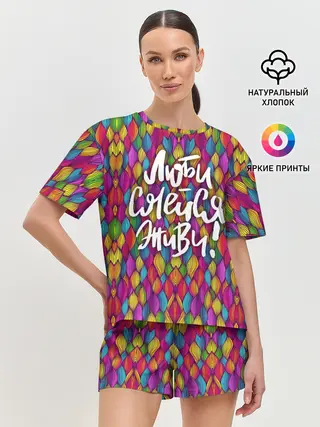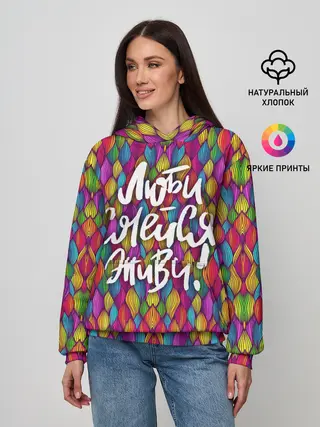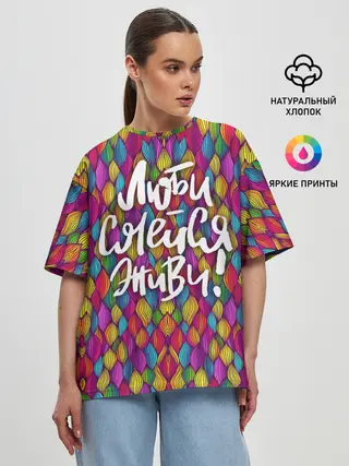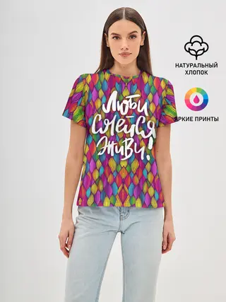 Лонгслив женский. Хлопок / Люби Смейся Живи