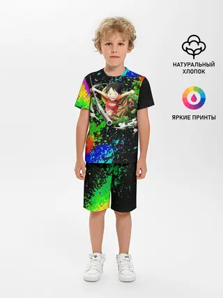 Детская пижама с шортами / Врывающийся Монки. Радужный фон