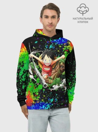 Худи мужской база хлопок / Врывающийся Монки. Радужный фон