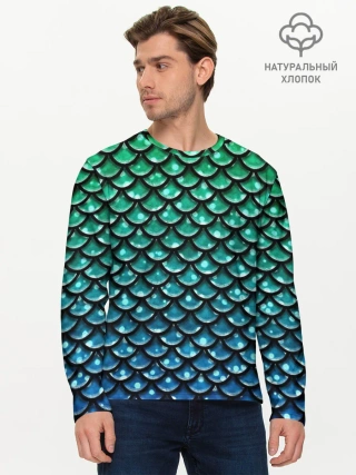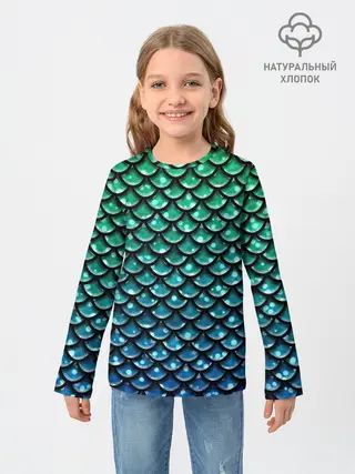 Лонгслив женский. Хлопок / Синяя чешуя