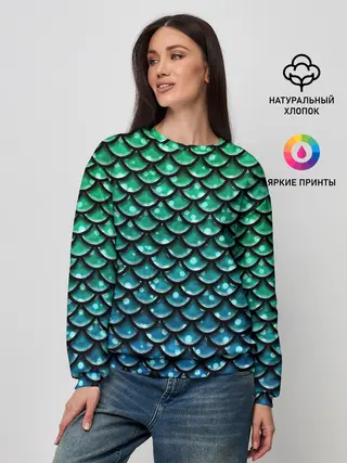 Лонгслив женский. Хлопок / Узор зеленая чешуя дракон