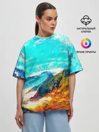 Женская футболка оверсайз / Японские горы