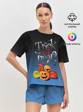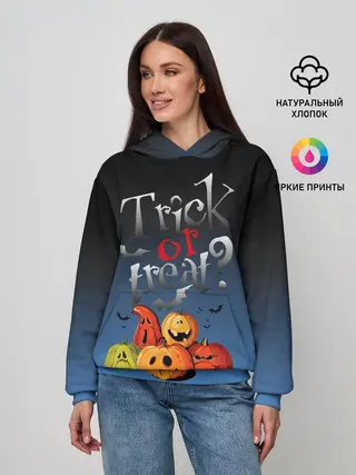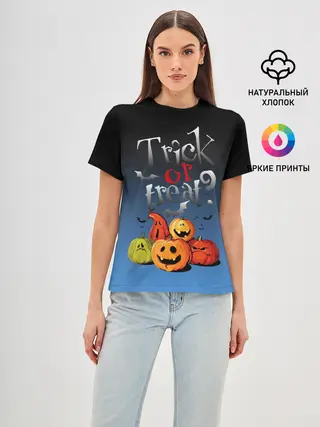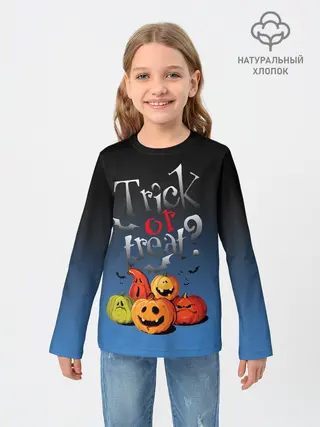 Лонгслив женский. Хлопок / Совушка и хэллоуин