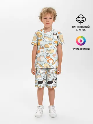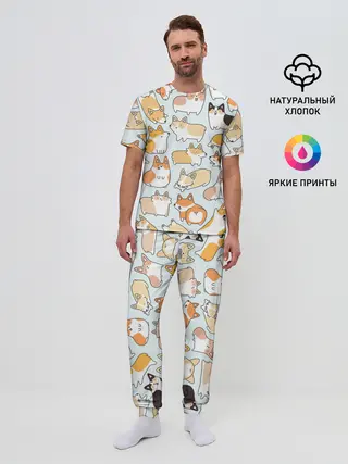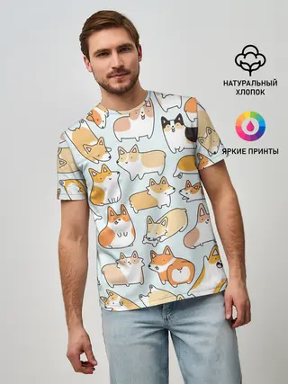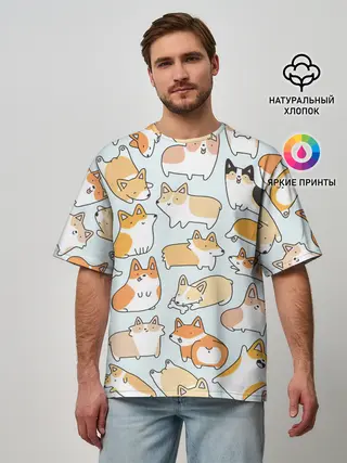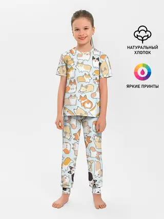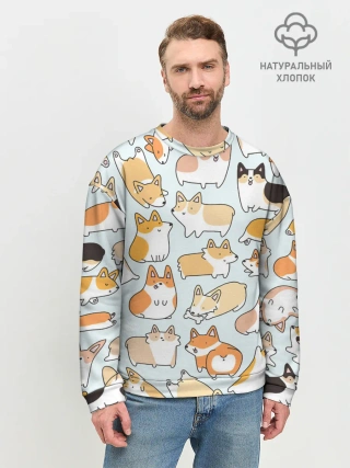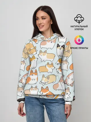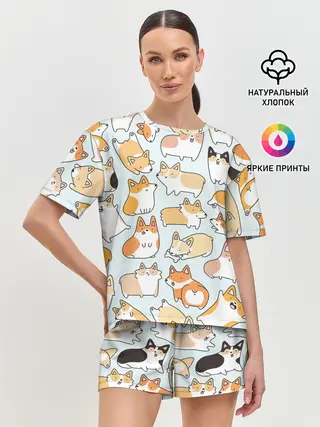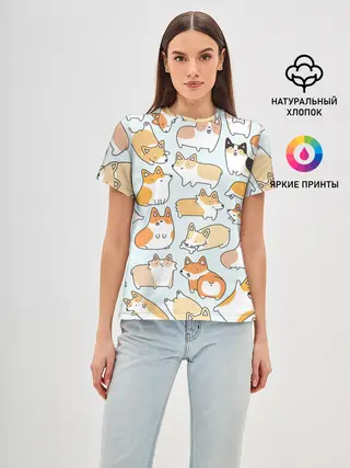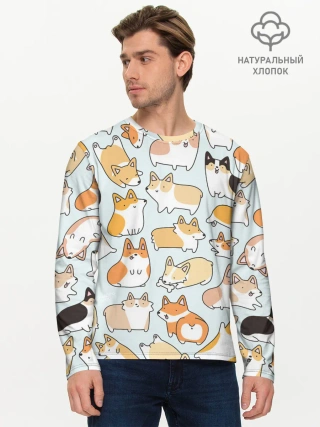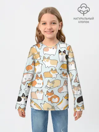 Лонгслив женский. Хлопок / Корги Паттерн 2