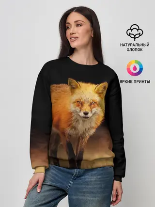 Лонгслив женский. Хлопок / Абстрактная лиса