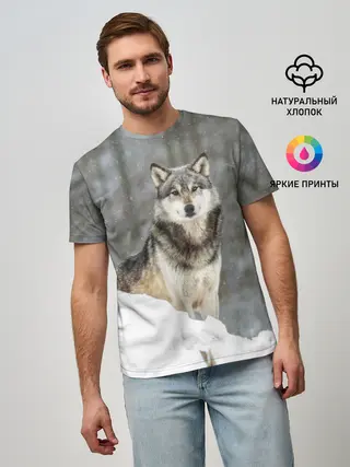 Мужская базовая футболка / Волк и снег