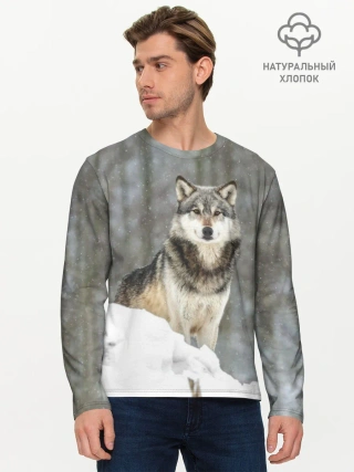 Мужской лонгслив базовый / Волк и снег