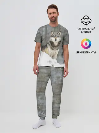 Мужская пижама с брюками / Волк и снег