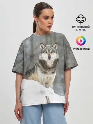 Женская футболка оверсайз / Волк и снег