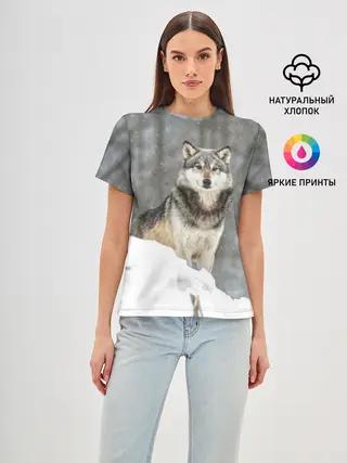 Женская базовая футболка / Волк и снег