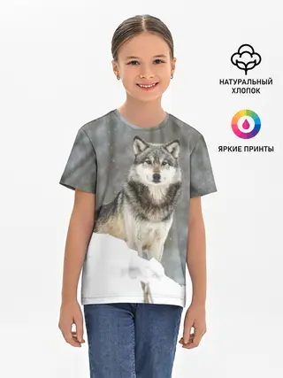 Детская базовая футболка / Волк и снег