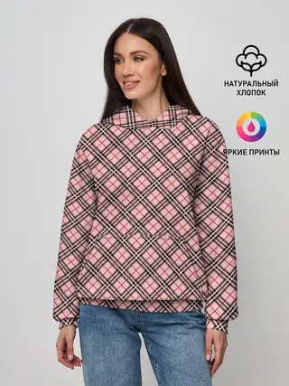 Лонгслив женский. Хлопок / Шотландка Розовая