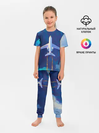 Детская пижама с брюками / Самолёт на небе
