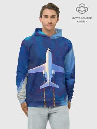 Худи мужской база хлопок / Самолёт на небе