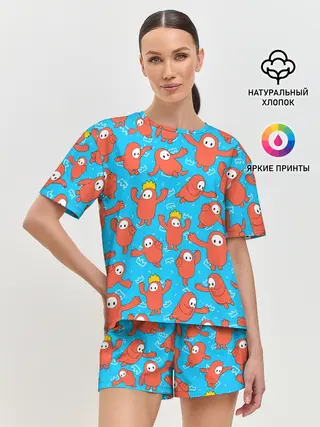 Женская пижама с шортами / Fall guys red