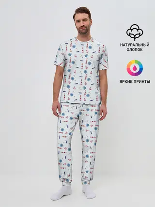 Мужская пижама с брюками / Кораблики да маяки