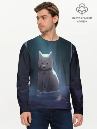 Мужской лонгслив базовый / Одинокий пес в озере слез