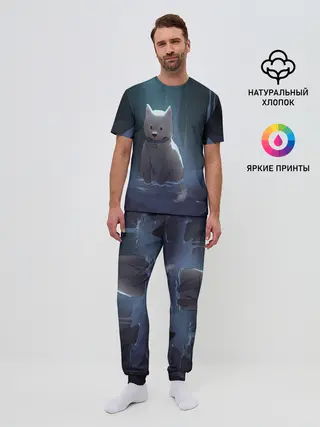 Мужская пижама с брюками / Одинокий пес в озере слез