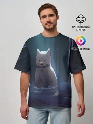 Мужская футболка оверсайз / Одинокий пес в озере слез