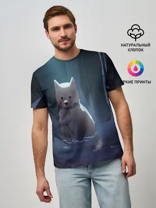 Мужская базовая футболка / Одинокий пес в озере слез
