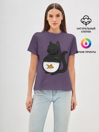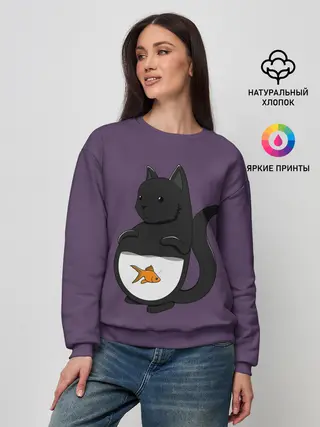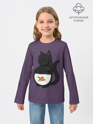 Лонгслив женский. Хлопок / Найди чёрного кота