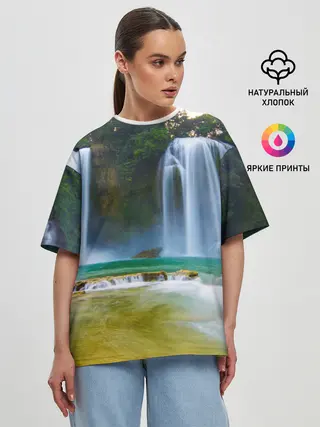 Женская футболка оверсайз / водопад